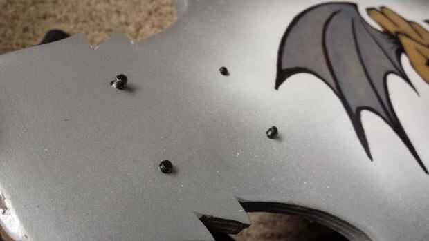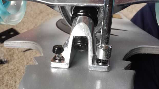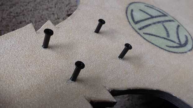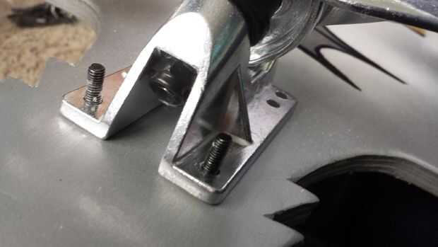 Usted tendrá que perforar a través de la cinta del apretón para los agujeros de acceso. Esto es bastante simple. Después sus tornillos a través de y vuelta el tablero. Los camiones deberán estar alineados bien sobre los tornillos. Si no, no se asuste. Apenas salga el taladro y limpiar perforando a través del orificio en el camión.