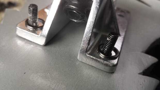 Con los tornillos a través de poner en sus arandelas y apriete las tuercas. Usé un destornillador y un sacatuercas para esto.
