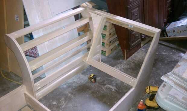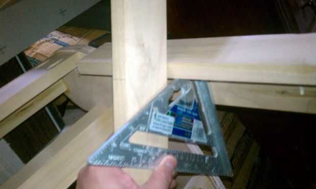 Coloque la parte C - 6 contra los carriles horizontales del respaldo y el soporte superior. Use una escuadra de viga para transferir el ángulo a la Junta. Utilice la sierra ingletadora para cortar. Mina fue unos 28 grados.