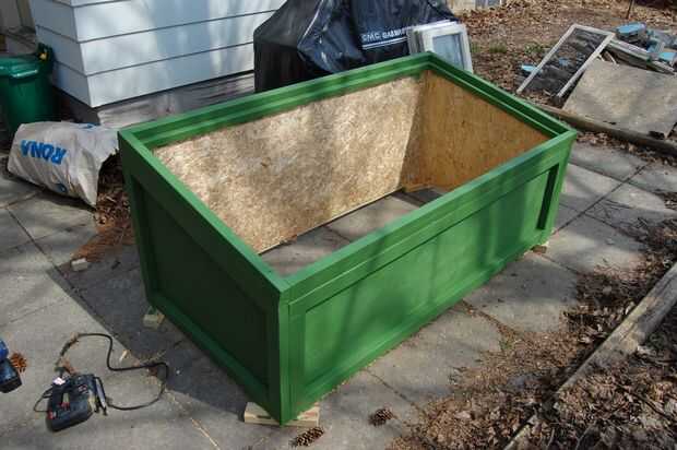 Comience con el exterior. Elegí una agradable pintura verde césped color, para ayudar a la caja gigante de mezcla en un poco. Pero en última instancia, el color es realmente depende de usted! Podría pintarla para que coincida con su casa, o tal vez un trabajo de pintura de camuflaje fresco con pintura en aerosol. O, que sea un asunto de familia y dejar que sus hijos a decorarlo quieras (sólo asegúrese de que usted aplique primero una capa base resistente a la intemperie!)