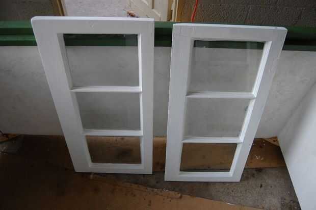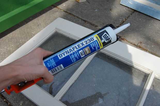 También se pueden pintar las ventanas. Te recomiendo primero todo el vidrio con un sellador de silicona al aire libre de alta calidad de sellado. Una vez seca la silicona, parchear los agujeros que quedaron de retirar el hardware antiguo.