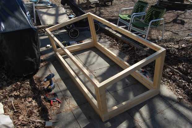 Perforar un avellanado en algunos lugares alrededor de la estructura, a continuación tornillos en cada orificio. Tres tornillos a los lados y cuatro a lo largo de la parte delantera y trasera deben ser suficiente.
