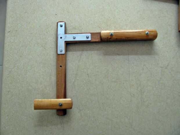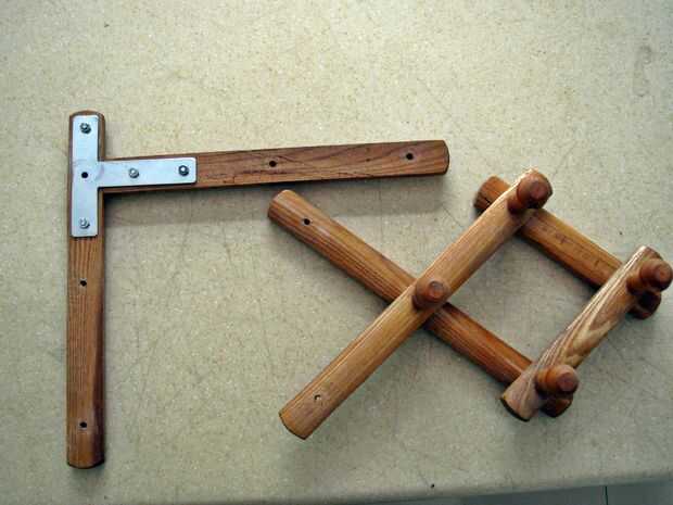 Tenía un soporte en t y acabo de perforar algunos agujeros que emparejan y atornillados dos brazos de madera para el soporte.