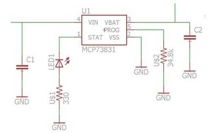 Un LiPo-cargador es un cargador Micro-USB litio basado en IC MCP73831 de Microchip. Se carga una batería de Li-a un ritmo de 30 mA, pero se puede aumentar para dar cabida a las baterías más grandes por intercambio de la resistencia k 34,8 conectado en el PROG en el Microchip.