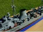 Montaje de las barandillas en la superestructura y casco fue un proceso muy lento y tedioso ya que cada sección tuvo que ser cortado y montado a diferentes áreas de tamaño. La superestructura después fue un trabajo relativamente fácil en comparación con la zona del puente delantero, Foto 11. Mi amigo Aldo Petrina de Italia me dice que cuando él adapta pasamanos a sus modelos que abandona algunas de las columnas un poco más que otros, usándolos para ayudar a localizar la sección ejecutar, en lugar de introducir necesariamente cada barra en el casco. Después de todo es un modelo estático, por lo que no son capaces de golpear, o al menos eso es la teoría. Después de las pruebas y tribulaciones de los pasamanos, el montaje era una sincronización!