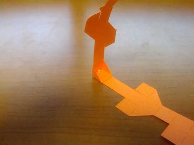 1) comenzar con la transmisión en posición horizontal. Tiene varias líneas de doblez perforado. Pliegue cada una de estas líneas en ambas direcciones, entonces poner la transmisión plana otra vez. Esto asegurará que las articulaciones móviles pueden moverse libremente en ambas direcciones más adelante.
