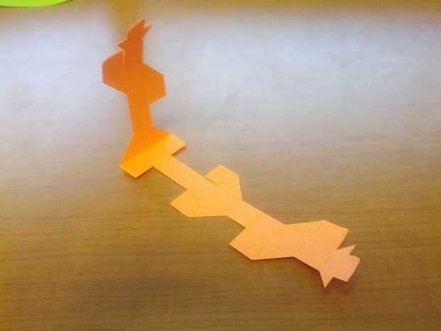 5) debe haber dos lengüetas que sobresalen a los lados cerca de las articulaciones que sólo plegada. Doble las lengüetas y pegarlos como se muestra en la quinta foto de arriba.