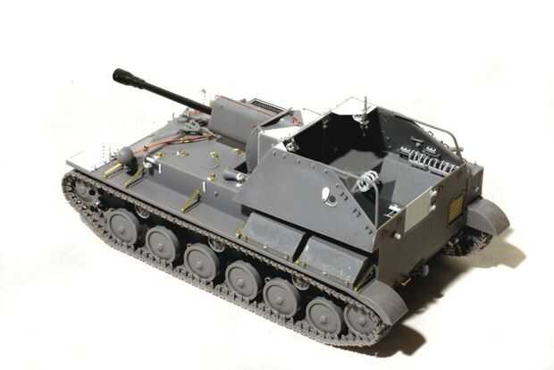 Reconstruyeron una cantidad justa de detalle en el frente exterior de la pistola de montaje basado en mis observaciones del en el Aberdeen Proving Ground. Decidí Mostrar mi SU - 76M sin el extenso surtido de herramientas en el juego, pero esto es más trabajo que el uso de las piezas del kit ya que requiere un conjunto de cierres de la herramienta. He hecho de algunos pedacitos de repuesto de hebillas de AFV alemán en mi escondite de PE. Reemplacé el cable de remolque kit con uno hecho de cable de cobre suave de Karaya, y representa uno de los diferentes estilos de bucle del cable de remolque a veces visto en Soviet luz AFVs que utiliza una serie de placas de pequeño tornillo para sujetar el lazo en posición. Para agregar un poco interés en la parte delantera, representa el guardabarros delanteros doblados para arriba, haciendo nuevo guardabarros delanteros de.010 tú hoja de plástico.