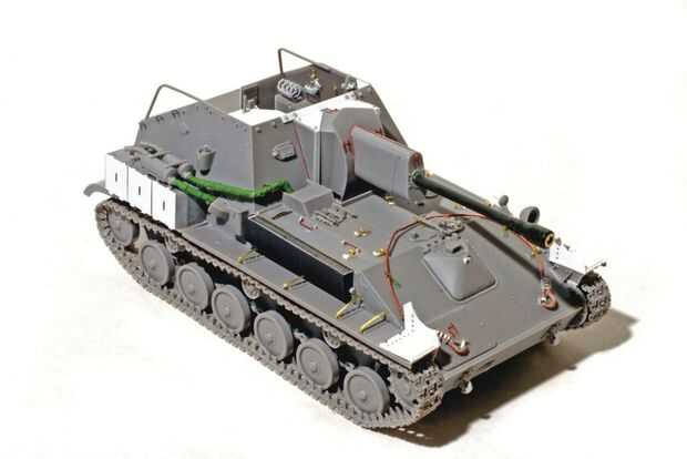 Ahuecado de los talones de escape en el lado derecho y también hacen fundas de invierno para la toma de aire ya que tenía la intención de representar mi modelo de camuflaje de invierno. Los tubos de escape en el SU - 76M generalmente se envuelve con tiras de tela de asbesto, y replica esta usando Navidad tejido cortado en tiras finas y empapado en una solución de agua y cola blanca antes de envolver los tubos del kit.