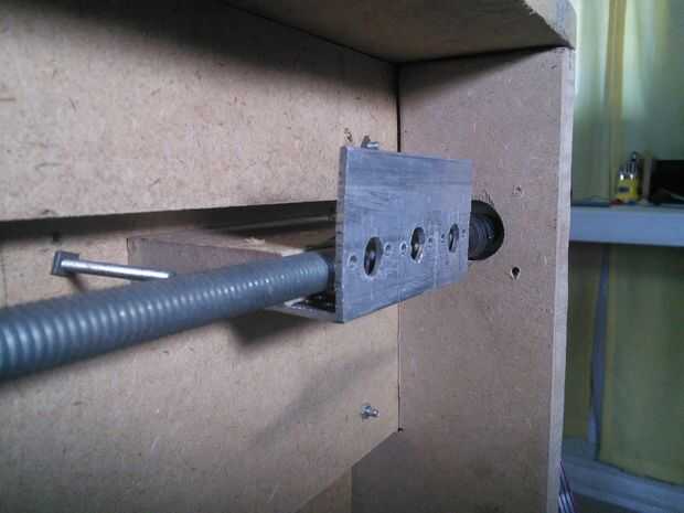 Estaba buscando basura que puedo reciclar, entonces de repente encontre este soporte de aluminio chatarra de mi colección de basura. La usé junto con un bloque de MDF como el motor del tornillo de eje x.