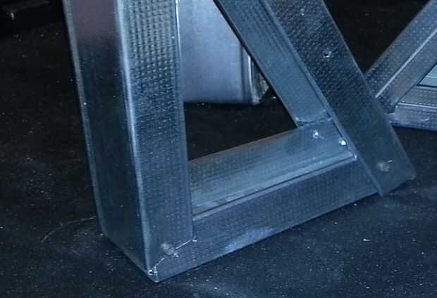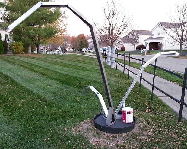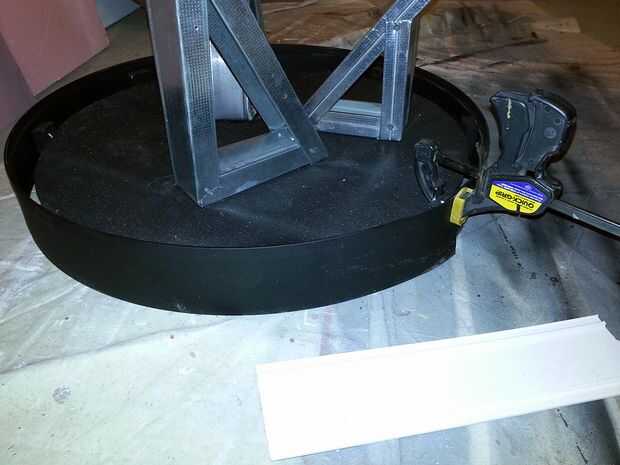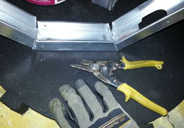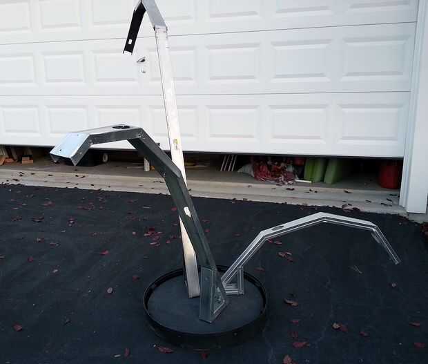 Con un par de tijeras para cortan, o ligeramente de la muesca, los lados de la viga, luego doblan a la forma de la lata. Empecé por atornillar abajo de una sección de una viga sobre un pie del extremo a la parte superior de la la madera contrachapada. Entonces doblé los extremos juntos, superposición de los lados y fijada con tornillos de rosca chapa. Trabajando mi up recortados, doblados y sujeta el montante cada cierto tiempo para formar una forma curva. Hice tres "brazos" de esta manera sobresalen de la madera contrachapada en diferentes ángulos y alturas.