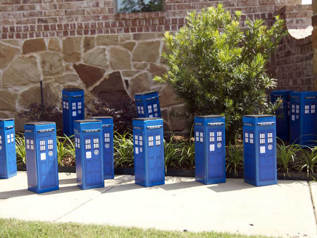 Un buen amigo de nuestros hijos iba a tener un 13 cumpleaños y sus padres querían hacer una fiesta temática Dr Who. De alguna manera casé se ofreció para hacer algunas piezas de centro de mesa de Tardi (Plural de Tardis?). Para aquellos de ustedes que no saben lo que un Tardis es, compruebe aquí: Tardis. Mi esposa y yo hicimos un pequeño brainstorming (ella era la fuente de nuestro voluntariado...) y decidió que para un centro de mesa pieza un 18" a 24" Tardis alto sería perfecto. Cualquier menor y pierde en la mesa y todo más grande. Tuvimos otros dos objetivos de diseño como va a ser 20 de ellos. En primer lugar, reducir al mínimo costo, en segundo lugar, reducir al mínimo tiempo de montaje. Pero, todavía tenía que ser cool y ¿mencioné que nos dijeron a nuestros amigos se encienden? Aquí está lo que vino para arriba con la tabla arriba Tardis!