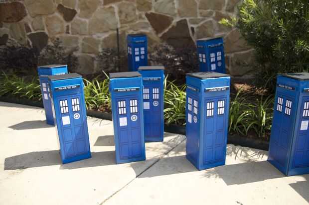 Lo hice un poco de investigación y encontré un recorte de cartón pequeño que puede doblar y presionar un par de aletas en las ranuras y tienes un pop-up Tardis. Esto sería genial si sólo necesitamos unos pequeños. Usted puede encontrar aquí: