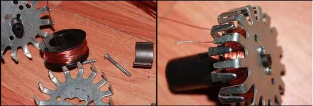 El generador que utilizo en este proyecto vino de mini ventilador http://junreyparacuelles.wix.com/flickers-of-ideas... . La bobina es 500 vueltas de #21 AWG de esmalte.