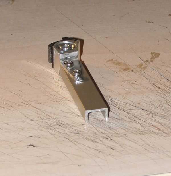 El brazo fue tierra cuidadosamente para encajar una pieza de canal de aluminio, entonces el canal fue perforado y el brazo atornillado a ella. Un poco de pegamento epoxi se añadió una articulación fuerte realmente buena.