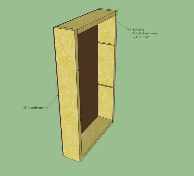 ** Nota: En lugar de madera para la parte posterior de la caja, se podría utilizar pegboard. Debe haber espacio suficiente entre la pegboard y la parte posterior de la pared para entrar el pegboard pegboard ganchos (y muchos otros accesorios).