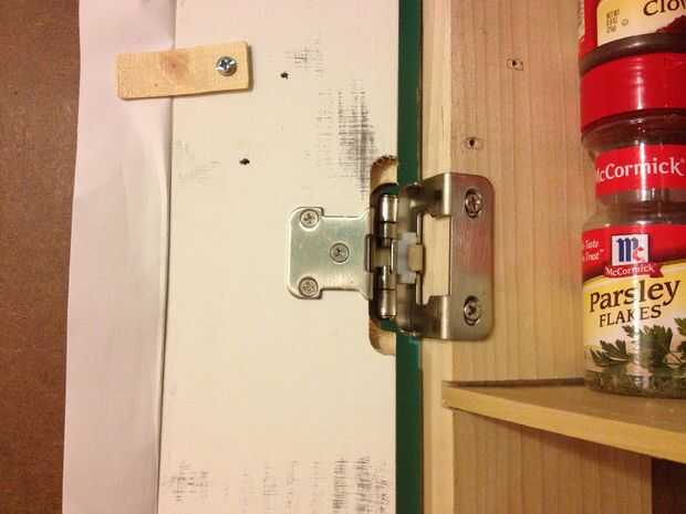 Sabes lo que dicen - vista trasera es 20/20. Pensar en ello ahora, pude han utilizado una bisagra de piano desde 1.5" justo al lado de la caja es un poste de madera. Cuando yo estaba la construcción de esto, pasé por alto el hecho de que había algo sólido para montar una bisagra, que no sea de la caja. Incluso tengo una bisagra de piano sentada en un cajón de mi caja de herramientas. Si utiliza una bisagra de piano, usted necesitará utilizar tornillos más largos para sujetar la bisagra en el perno. Los tornillos que vienen con la bisagra son demasiado cortos para ir a través de la pared y en el montante.