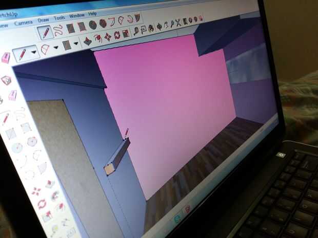 Mi habitación tenía un haz emergente desde el techo de una de las paredes. Quería inclinarse contra mi pared de bloque y la pared opuesta, colocando otra viga a la pared opuesta, a un ángulo de 25 grados.