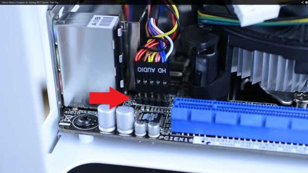 Conectar el cable de audio HD en el lugar indicado al lado de la tarjeta RAM y gráficos. Puede ayudar a quitar temporalmente la tarjeta gráfica.