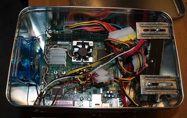 El ventilador he conectado en el otro extremo de la caja justo en el otro lado de la placa base. Resulta que debido a que el borde redondeado, tiene suficiente espacio para poner el ventilador en.