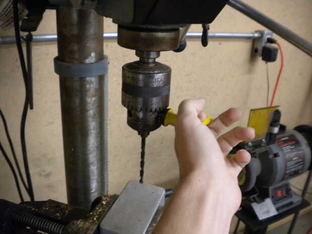 Encontrar que todo el diferente tamaño taladro pedacitos que necesitará y dirígete a la prensa del taladro. Orden de perforación no importa, así que comienzo con lo que agujero te gustaría.