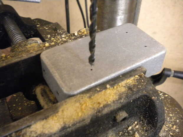 A continuación, tomamos la caja ahora marcada a una tienda que tiene una prensa del taladro. Antes de hacer realidad cualquier golpes permanentes, es necesario determinar qué tamaño de estos orificios deben ser. Para ello, utilizamos el índice de broca de taladro.