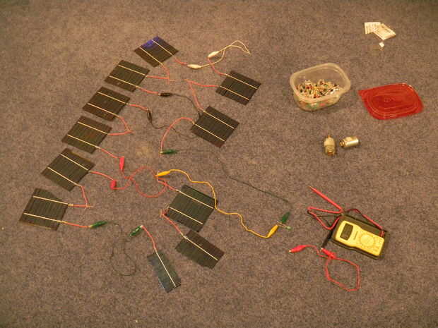 He probado la salida de cada celda con un polímetro para ver lo que me metía. También conecté algunas células hasta LEDs y unos pequeños motores para probar mi salida. Estas pruebas se realizaron para determinar cómo debo combinar las celdas en serie y paralelo para obtener la cantidad correcta de voltaje y amperaje de mi aplicación. Acabé decidiendo conectarlos en serie, como mi salida fue bastante decepcionante.