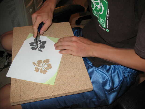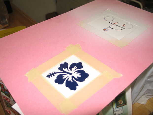 En primer lugar, encontrar una imagen que te gustaría poner en el altavoz. Algo simple hará su vida mucho más fácil. Elegí una flor de hibisco para la parte delantera, logo simple en la parte inferior y un par otros. Imprimir esta imagen y luego pegarla a una pieza dura de papel con cemento de caucho.
