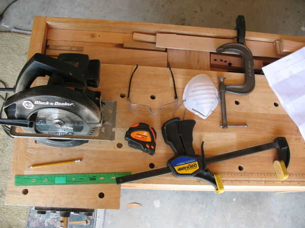 1) encontrar un pedazo de madera para utilizar como una guía para la sierra larga, recta.