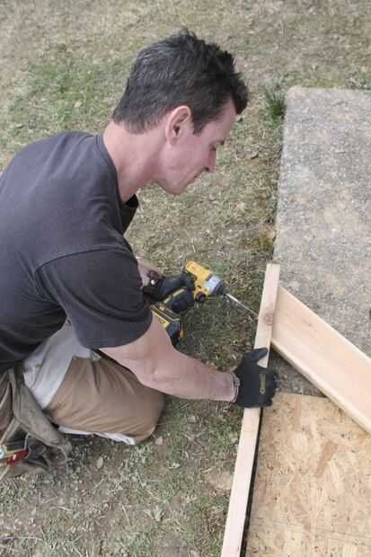 Para obtener el ángulo de la parte inferior, nos simplemente atraviese una tabla recta de la parte inferior del había trazado el ángulo y cortarlo. Luego sujeta el patín a la estructura a. Hemos centrado nuestras piernas ubicados en el centro del patín de 2 × 6.