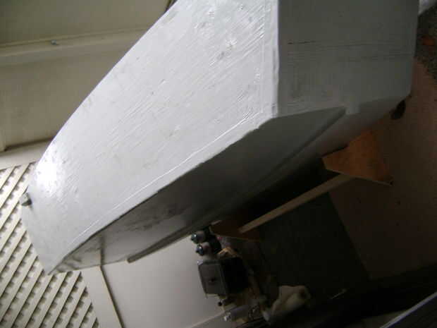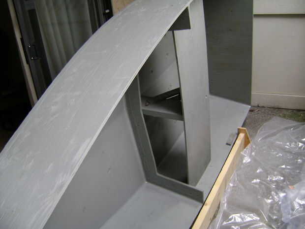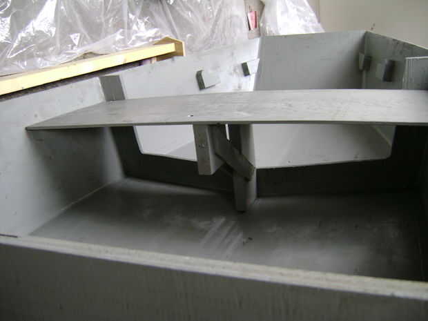 De todos modos... usé pintura Marina. Gris del acorazado. Agrega el efecto de cinta de conducto en las costuras. He añadido algunos bits a los rincones donde las piezas laterales se unen a la espalda y el delanteros piezas con agujeros en ellos para que yo pudiera tener un lugar para amarrar una cuerda a la misma.