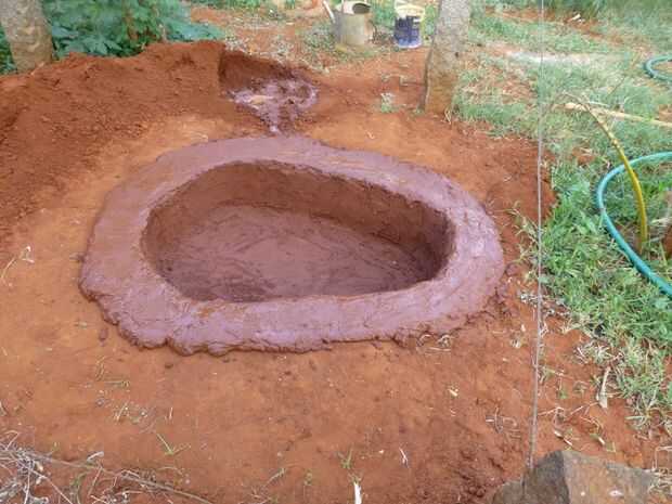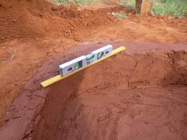 Utilizando barro yeso, hacen la superficie de nivel del área de estanque con referencia a las marcas de nivel del alcohol. Usted puede tener un ancho igual a la del ladrillo sobre el forro del estanque.
