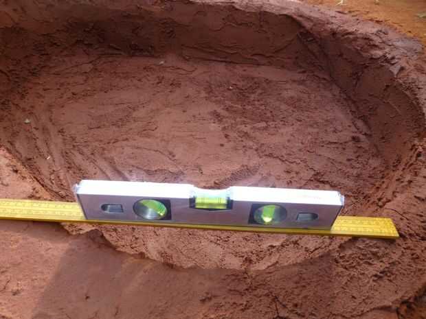 Compruebe el nivel del estanque con un nivel de burbuja y marcar la diferencia en diversos lugares alrededor del estanque. Esto es importante para tener un estanque de aspecto uniforme.