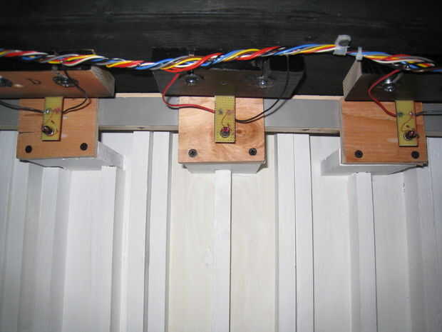 En nuestro caso nos arregló las claves (octavas) de 4 filas y 7 columnas (notas blancas). Analizar las columnas (notas) uno a la vez y ver que esas notas son activos dentro de las octavas. Después de hacer exploraciones de 7 (para cada nota) sabremos el estado de cada una de las 28 teclas. Especificamos la nota para escanear utilizando 3 salidas (8 posibilidades - sólo necesitamos 7 notas) y 4 entradas (4 octavas). Necesitamos 7 alambres para las notas y 4 cables para las octavas. Podemos resolver el problema utilizando 11 cables y 7 pernos del IO. Esta es una gran mejora.