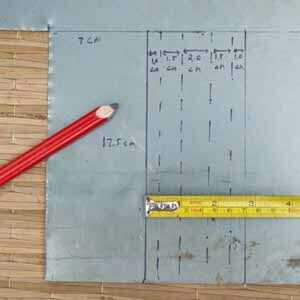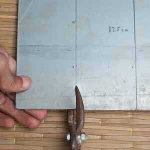 1. dibujar el diseño en plano del metal de hoja 17,5 cm x (1 cm, 1.5 cm, 2 cm, 1.5 cm, 1 cm) 2. cortar el metal de hoja 3. doblar el metal corte en forma 4. haya terminado.
