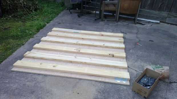 Cortan tres 12 pies, 2 pulgadas x 6 pulgadas madera barras largas (cerca de $7 cada uno) en dos mitades que seis barras de 6 pies para conectar los dos tableros.