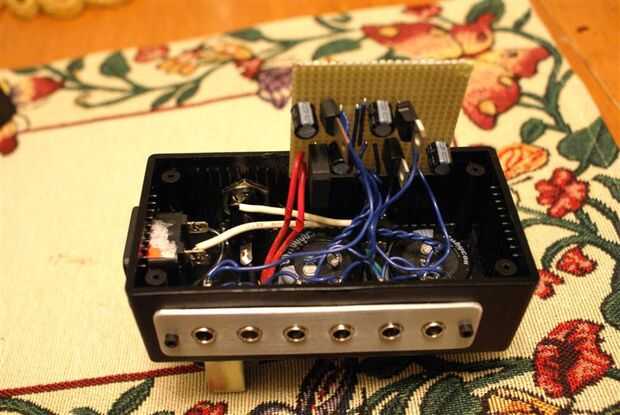 Con el tablero encima de las tomas, asegúrese de que no hay ningún cortocircuito, especialmente en el lado AC del circuito, cuidadosamente del enchufe en la fuente de alimentación y ver si funciona. Utilice un multímetro para comprobar que no hay 12 v en las tomas de 12V, 9V 9V, etc.. El LED deberá encenderse.