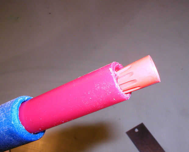 Tomar el mango de la brocha y pone al lado de la regla con el extremo en 2 1/2" y apriete como se muestra en el cuadro #3. Se trata de su calibre en cuanto a profundidad se empuje el conector en el poste.