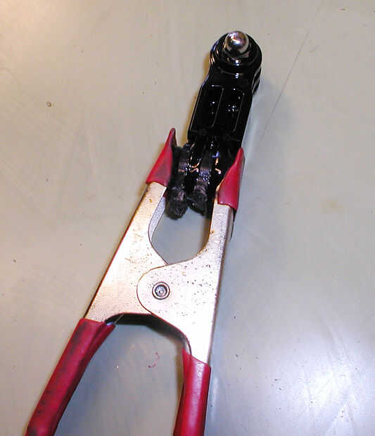 Una vez seguros que los orificios están bastante alineados, coloque la abrazadera sobre el mismo y ponerlo a un lado a endurecerse. Volvamos nuestra atención hacia el mango.