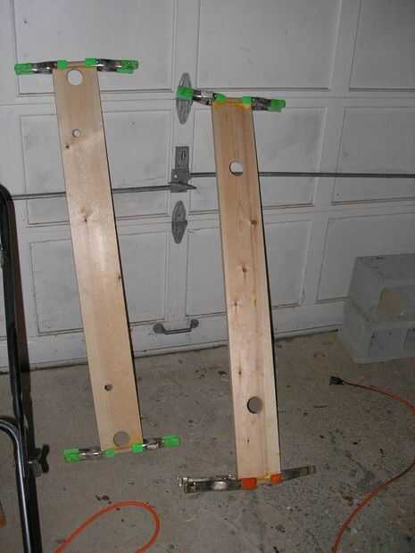 (4) añadido final contratiempos (tuve desecho de roble cuarto redondo) en los extremos de la barra transversal para apoyar las tablas de pino en su veta para resistir la separación y también para reforzar en caso de que más adelante Taladre los agujeros hay para puntos de anclaje en los extremos de las barras transversales.