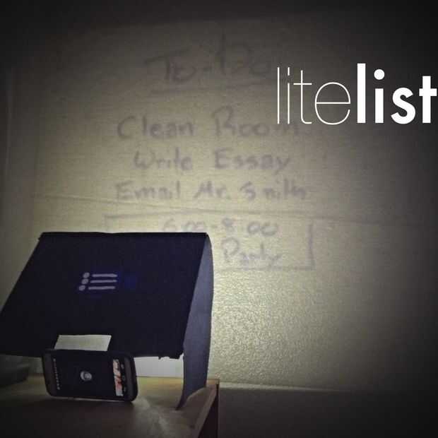 Soy una persona olvidadiza; olvidarse de sacar la basura, el césped, de agua o poner la ropa (es broma). Necesitaba un despertar de la mañana hasta la alarma que me recuerdo de todo lo que tenía que hacer cada día, casi como una secretaria personal. Así que hice la LiteList, una transparencia como proyector que utiliza la linterna de su teléfono activado por alarma, proyectando una seco-borra la hoja de notas escritas. Así que cada mañana cuando suene la alarma en mi celular, una hoja de los acontecimientos y a-que había escrito la noche anterior se proyecta en la pared frente a mí. Aquí está cómo: