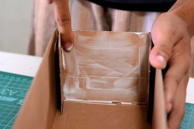 Reforzar la caja pegando las esquinas de la caja y las aletas. Esto evita que lo mueve.