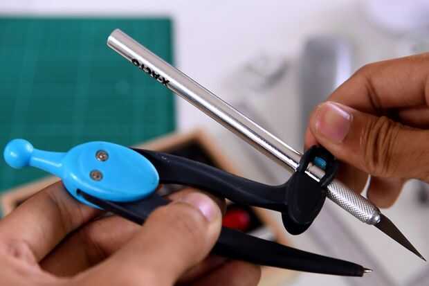 Aquí es un simple truco que usé todo el tiempo. Si eres demasiado OC, puede utilizar un cuchillo XACTO en el otro extremo de un compás para cortar un agujero perfecto y redondo.