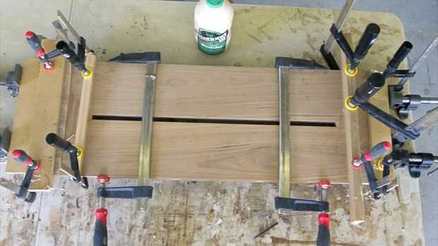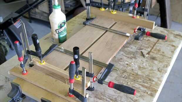 Como se ve en las fotos que he encontrado la manera más fácil y precisa de cola-para arriba es aplicar presión de sujeción tanto a lo largo de la Junta y a través de. Haciéndolo de esta manera permite que ajustar la tensión en cada abrazadera para hacer la Plaza de la Junta y cerrar los huecos en las articulaciones.
