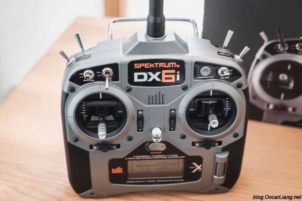9 la DX6i es sistema básico de Spektrum. Sin embargo, Spektrum es una marca de alta calidad en sistemas de radio, y la DX6i es un gran transmisor, especialmente por su bajo precio ($~ 110). La DX6i es un transmisor de 6 canales, que es suficiente para el quadcopter Quanum Venture. Si usted quiere poner un cardán de cámara en el quadcopter en algún momento, puede que desee actualizar a un sistema de canal 9, que le permitirá controlar los ángulos del cardán. El requisito mínimo para el transmisor es que usted debe ser capaz de ajustar los puntos finales de todos los canales, especialmente los interruptores. Esto significa que usted probablemente necesita un transmisor computarizado. La DX6i también viene con un receptor que se montarán dentro de lo quadcopter.