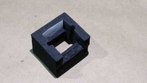 Así que la primera orden del día es modificar el bloque de espuma para el titular de la cámara para que pueda contener la PilotHD. Afortunadamente esto es bastante simple de hacer, todo lo que necesitas es un cortador de cuchillo o caja Xacto, sólo asegúrese de que la cuchilla está muy afilada.