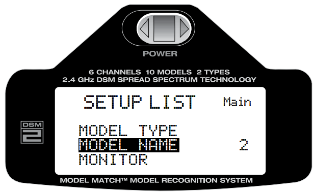 La DX6i tiene una útil característica llamada ModelMatch. La DX6i se puede programar con hasta diez modelos diferentes; en otras palabras, la DX6i puede almacenar la configuración de hasta diez vehículos. Esto es una gran característica, si usted está operando diversos vehículos porque puede cargar configuración individualizada para cada embarcación con sólo presionar un botón. De esta forma que no es necesario reprogramar el transmisor cada vez que cambie los vehículos.