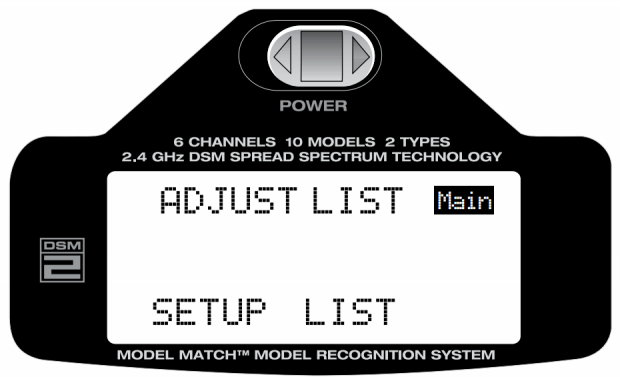 Usando esta función tiene dos grandes pasos: el modelo en el transmisor y enlazar el sistema de radio. Antes de hacer la primera parte, establecer un modelo en el transmisor, tomaremos un momento para aprender a navegar por la configuración de la DX6i.