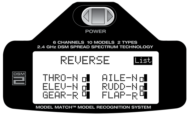- En el menú principal de la DX6i, seleccione el último elemento en el menú, lista de configuración