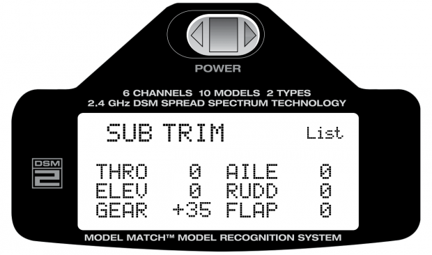 Sub trim se utiliza básicamente para cortar literalmente el de la parte inferior del control gama, o puede usarse para añadir algunos a la parte inferior de la gama del control. Se puede pensar la función Sub Tim como una manera de mover toda la gama de entradas de control hacia arriba o hacia abajo. Imagino que esto es exactamente lo que queremos hacer de nuevo! Así, el segundo paso en la fabricación de la selección de modo de vuelo trabajo es reducir el nivel de acabado de sub del interruptor GEAR.